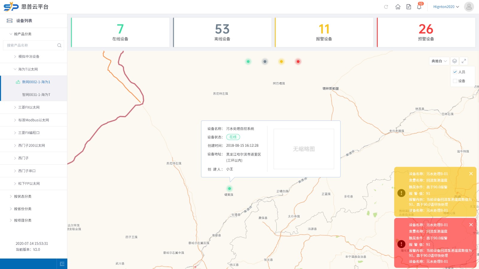 GIS(即Geographic Information System)思普云可實時獲取硬件定位信息在云端系統快速形成地圖顯示設備在線位置情況。