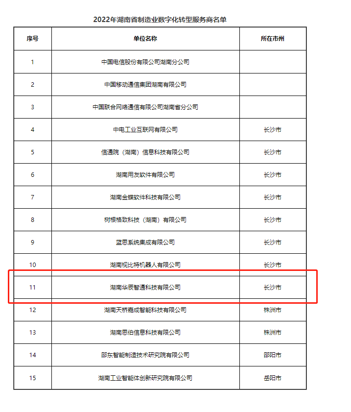 5月27日,在湖南省工信廳的精心組織和安排下,在眾多優(yōu)秀企業(yè)的激烈角逐中,華辰智通脫穎而出,成功入選2022湖南省制造業(yè)數(shù)字化轉(zhuǎn)型服務(wù)商名單,這充分代表了華辰智通在湖南省制造業(yè)數(shù)字化轉(zhuǎn)型解決方案的實力,也淋漓盡致地體現(xiàn)了省工信廳及各位專家對華辰智通的認可。