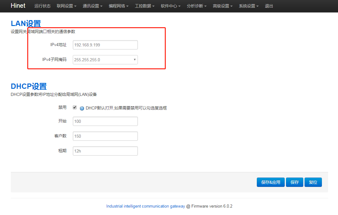 1.網關LAN口IP與PLC的IP是否在同一網段,進網關后臺,點擊“通訊設置 - LAN設置”,修改網關LAN口IP,使其與PLC的IP處于同網段。