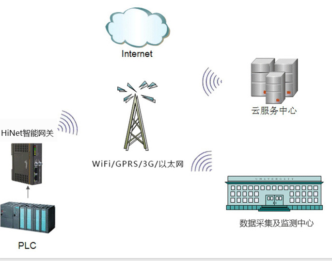 網絡傳輸層由各種網絡,包括互聯(lián)網、廣電網、網絡管理系統(tǒng)和云計算平臺等組成,負責傳遞和處理感知層獲取的信息。HINET智能網關能接入SIEMENS、AB、ABB、OMRON、MITSUBISHI等主流PLC,數(shù)據(jù)加密后遠傳到云端數(shù)據(jù)服務器中,具有斷點續(xù)傳的特點,確保系統(tǒng)的數(shù)據(jù)完整性。